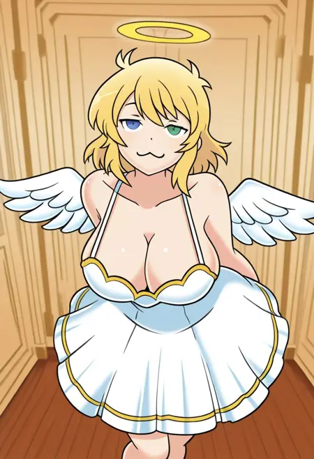 我建议在提示词中添加“金色头发、异色瞳”以更准确地生成她的形象。