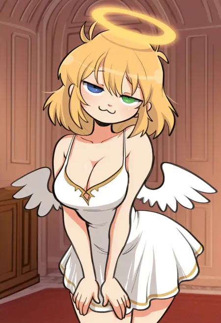 我建议在提示词中添加“金色头发、异色瞳”以更准确地生成她的形象。