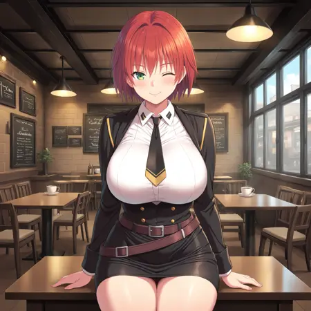 Character Prompt: z_helena,red hair, short hair,green eyes,large breasts
