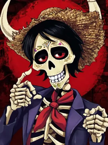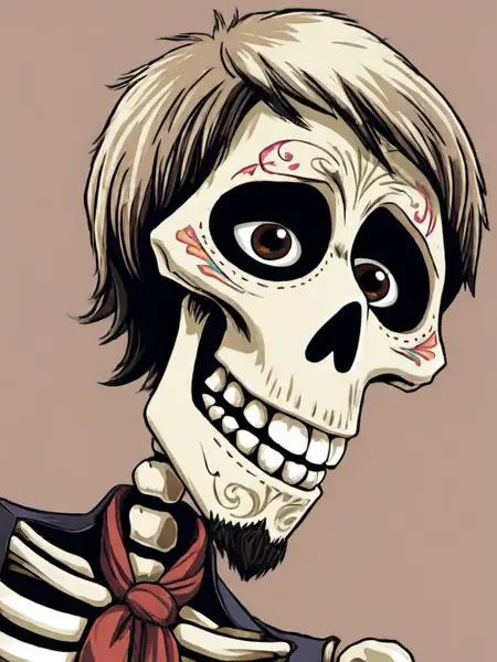 This LoRA is inspired by the skeletal musician from the world of Coco.