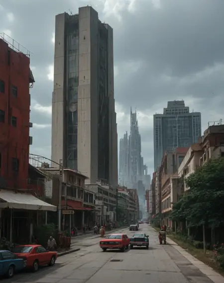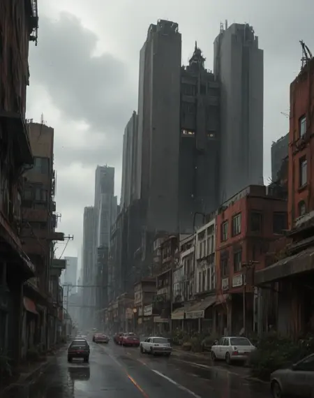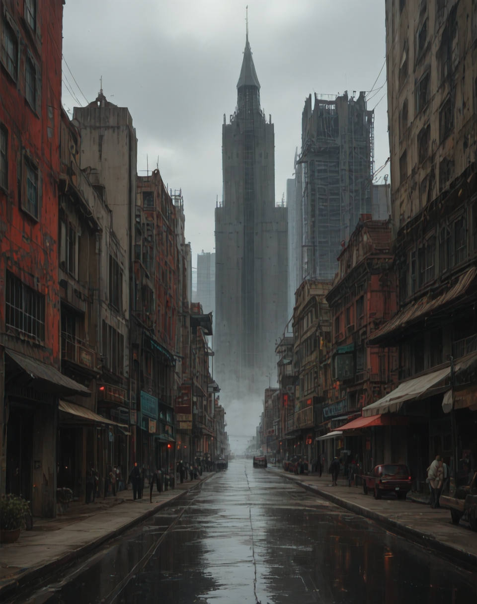 Steelpunk is a style of punk that is sort of a cross between the Atompunk era and the Cyberpunk era. It is marked by emerging tall skyscrapers that look like realistic 80s skyscrapers with aspects that subtly look Cyberpunk in nature. Many of the regular buildings where most people live tend to look decayed and run down due to a large disparity between the wealth classes.