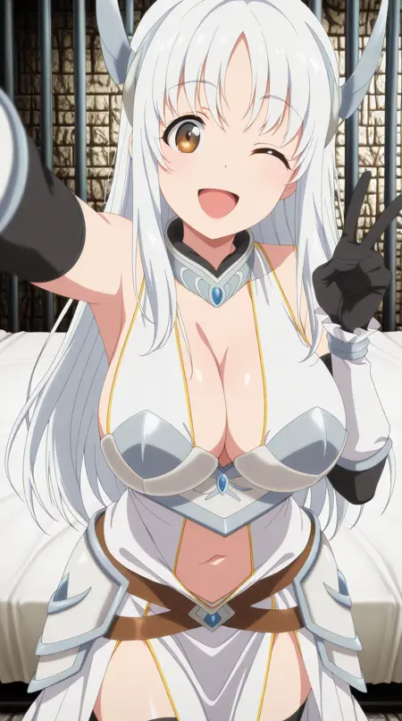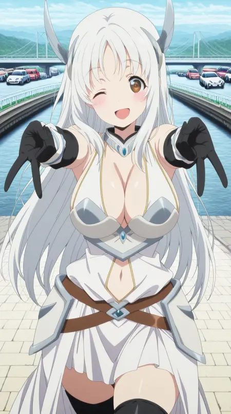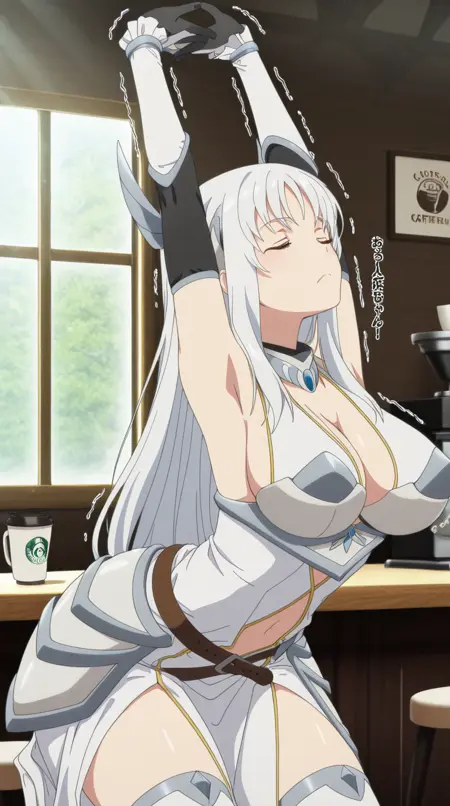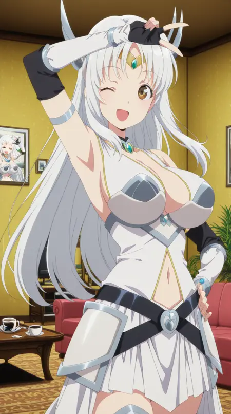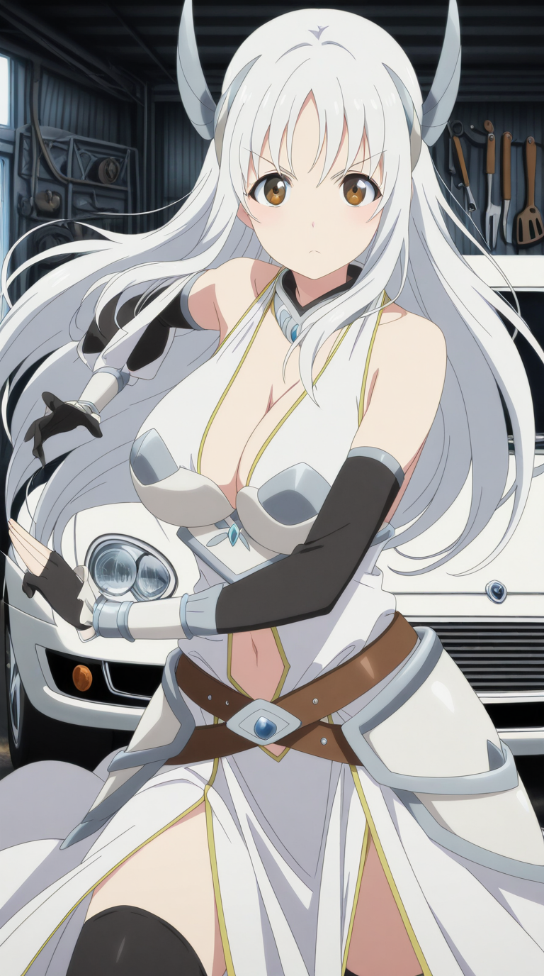kaori shirasaki, long hair, brown eyes, white hair, mature female, large breasts, anime screencap