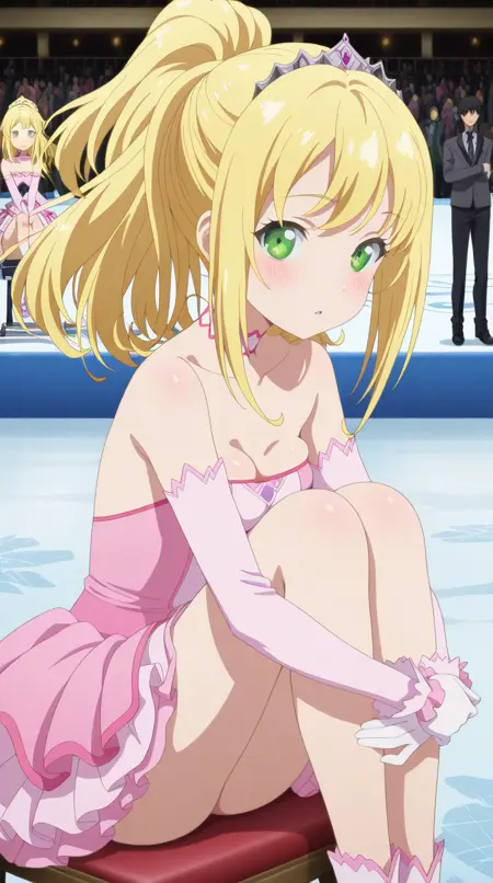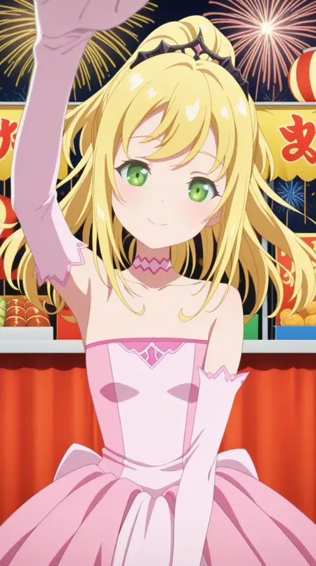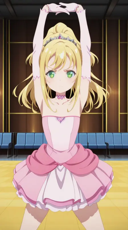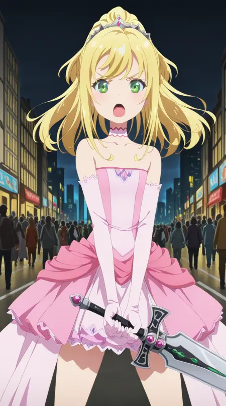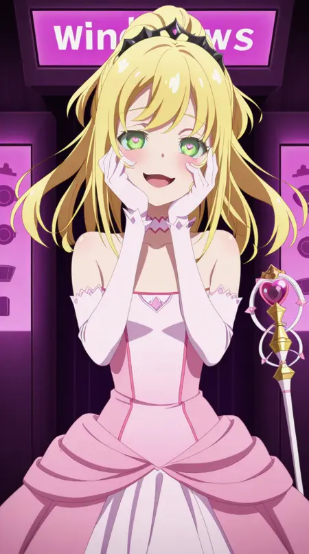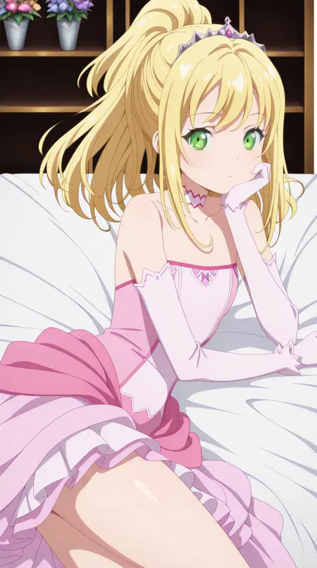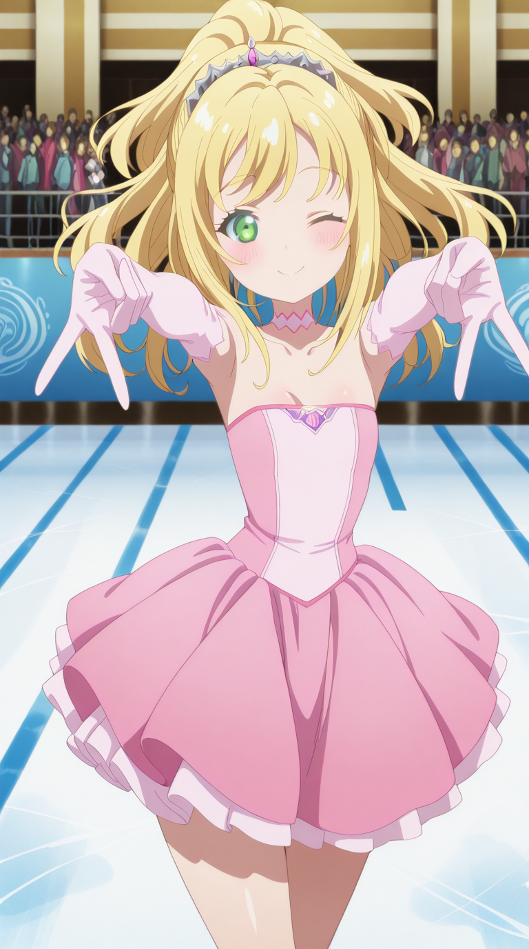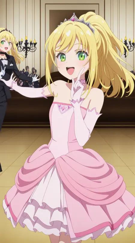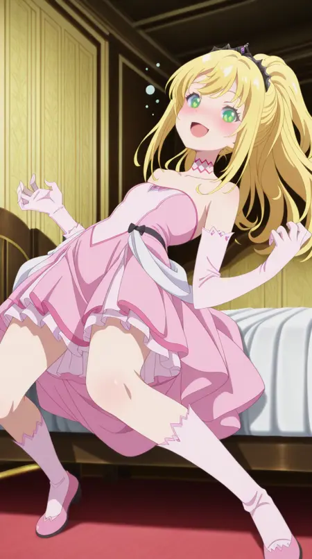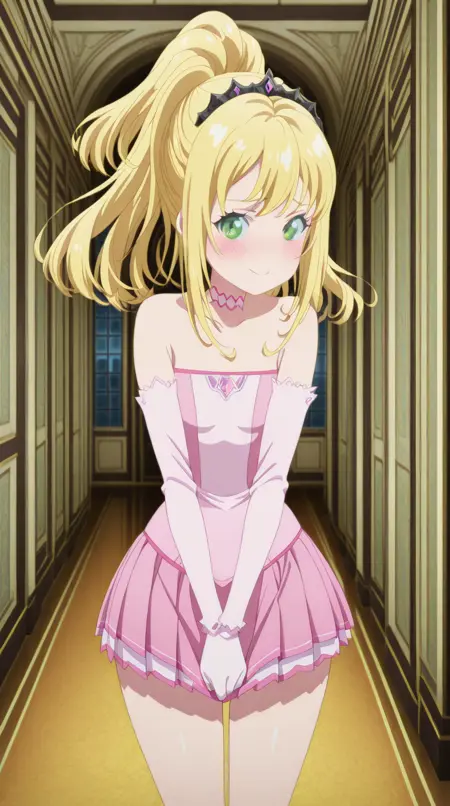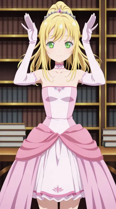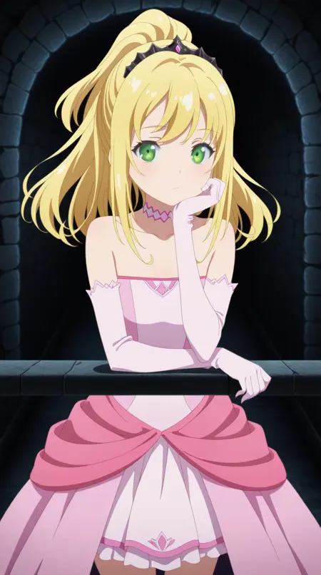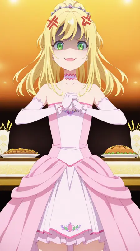 手袋, ドレス, 別れ袖, チョーカー, レースレス, 冠, ピンクのドレス, レースレスドレス, ピンクの袖