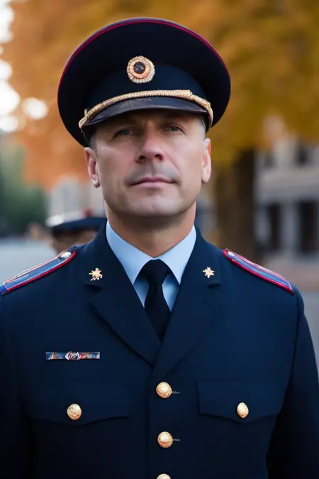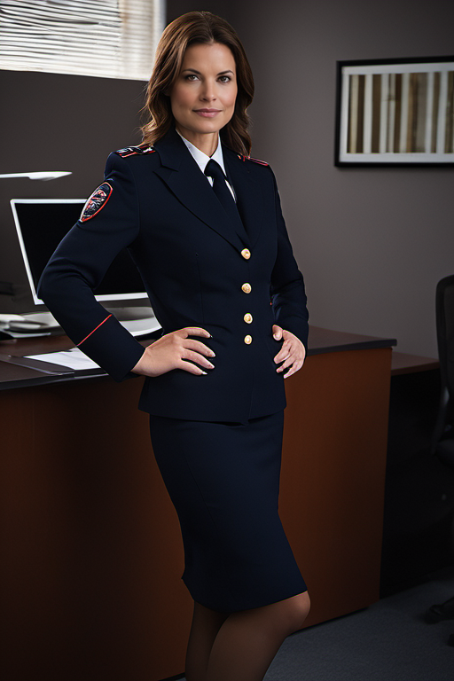 トリガー語: RUcop3、つば付きキャップ、警察の制服、黒いスカート、黒いズボン