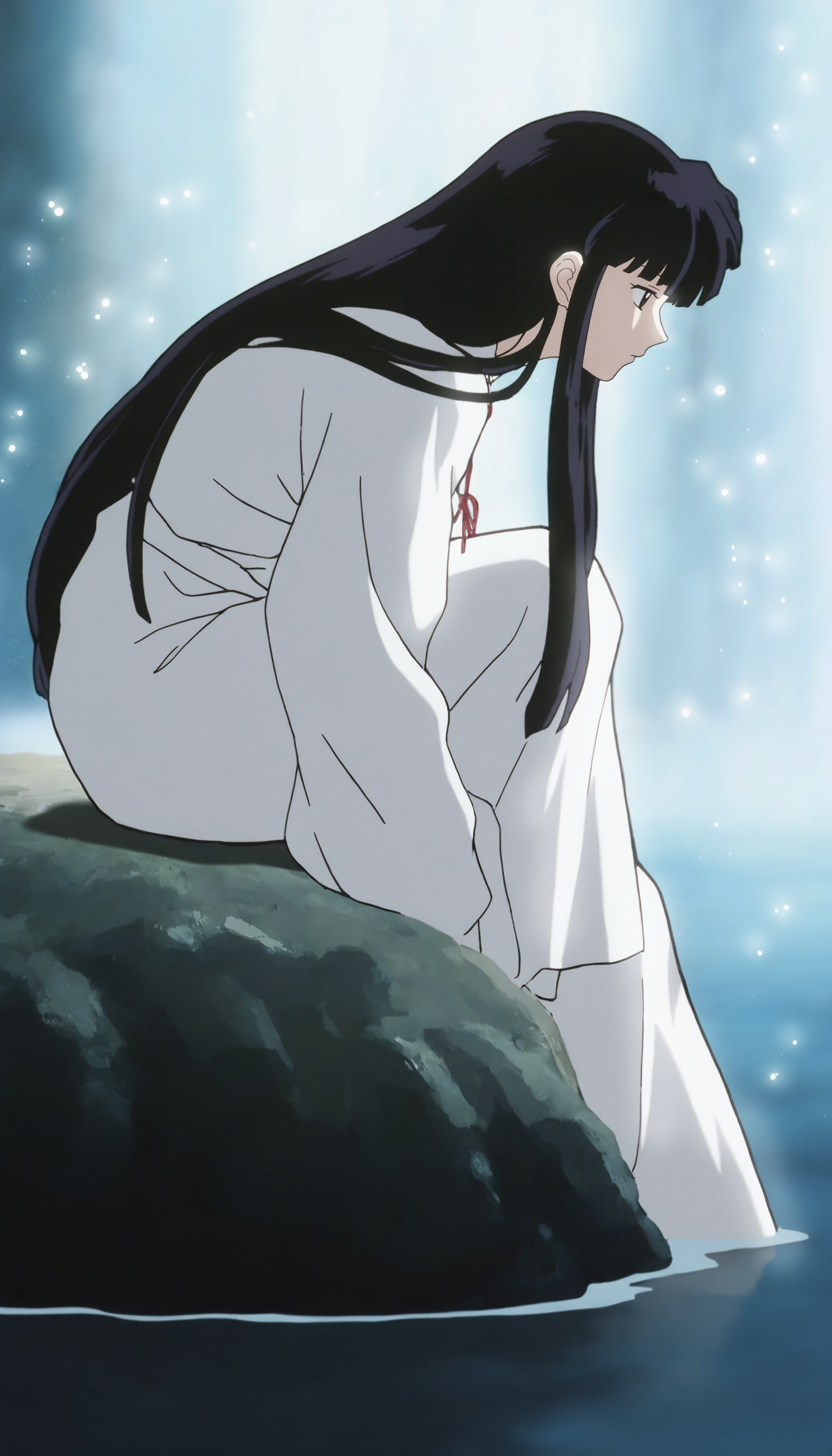 klky0, 검은 머리, 앞머리, 긴 머리, 갈색 눈, 흰 로브, 맨발,