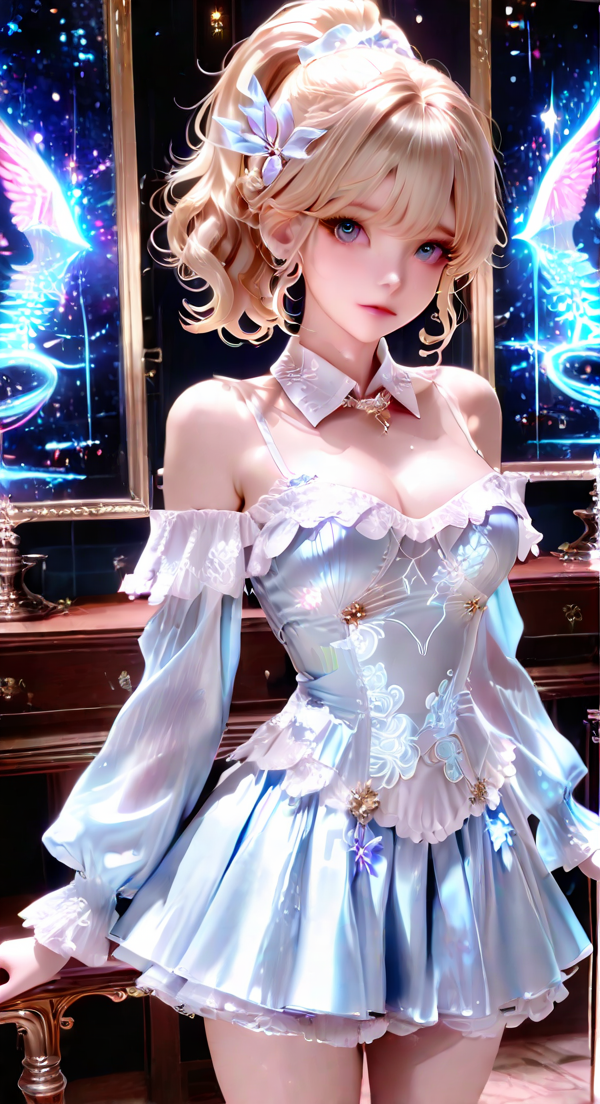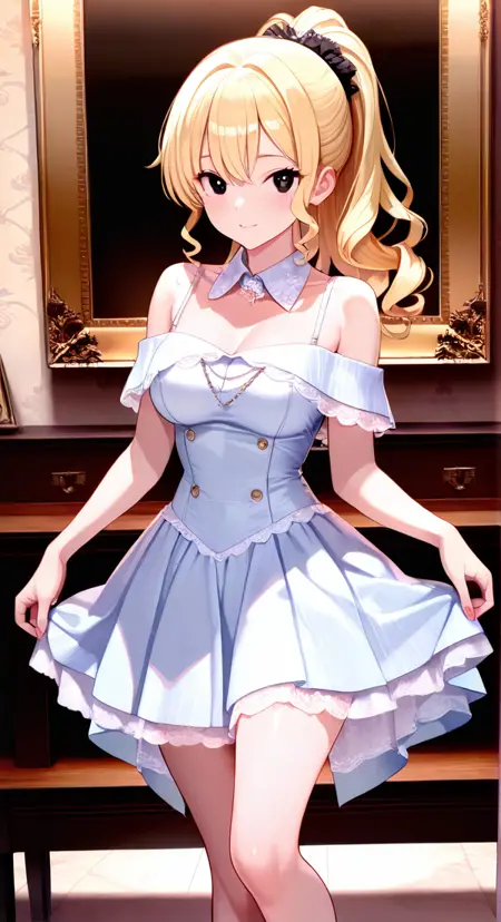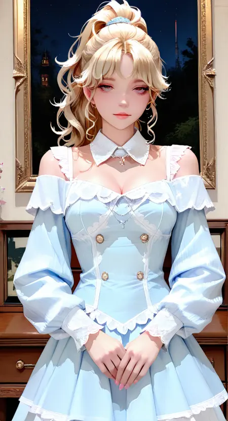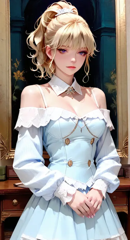 Prompt word: off-shoudler-dress, detached collar, skirt