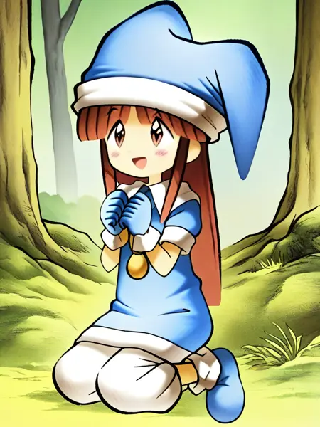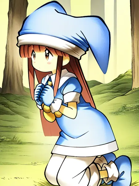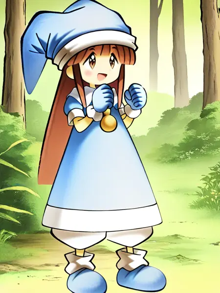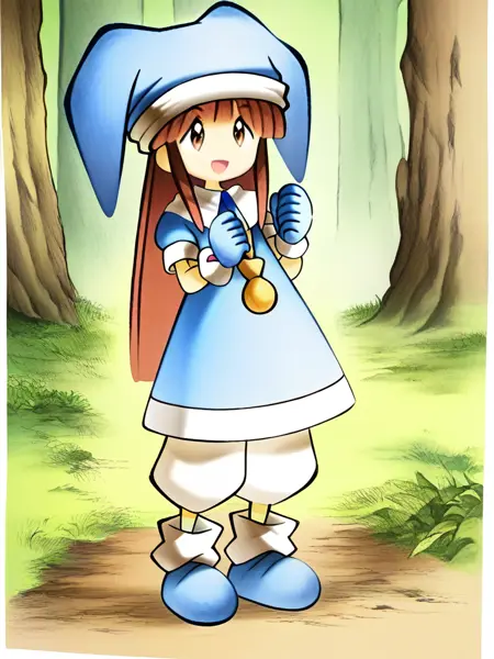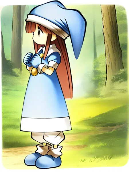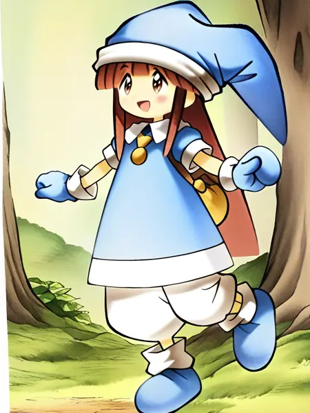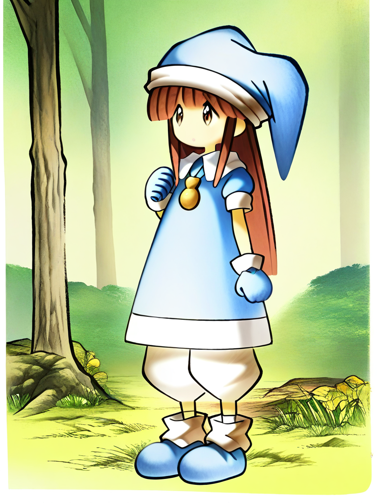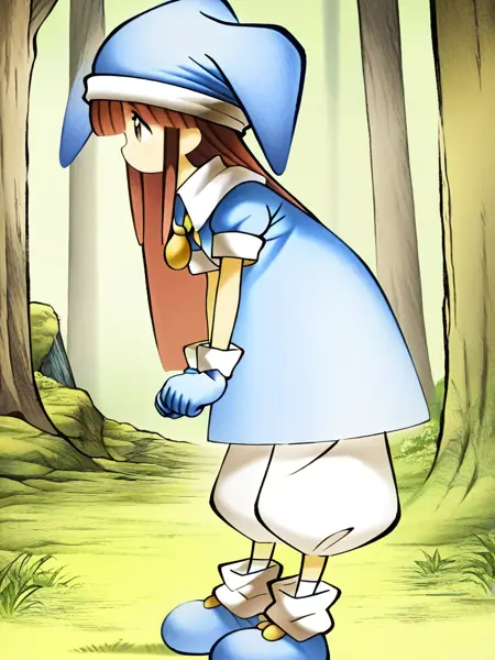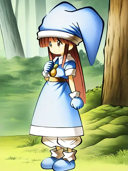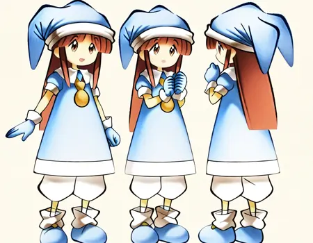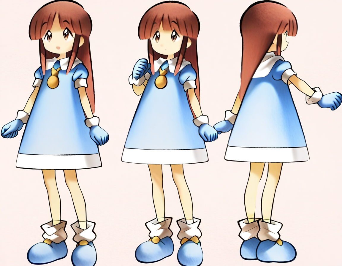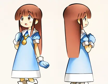 ED後のおまけシナリオで逢うことができる隠しキャラですが取説やパケ絵には描かれており大変可愛いデザインのためloraを作ってみたいと思っていましたが素材が1枚しかないキャラなので実験的なものでもあります。本来イラストでは存在しない後ろ姿まで作れたことに驚きました正直。