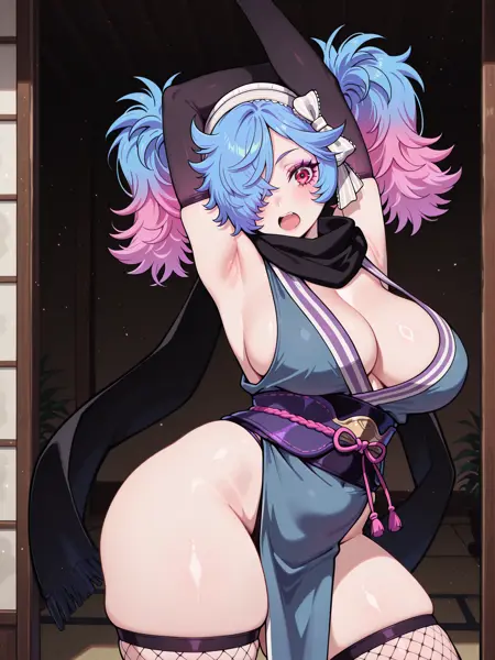 | トレーニングワード | PeriBase, gradient hair, blue hair, pink hair tip, twintails, hair over one eye, red eyes, bonnet, striped hair bow, turtleneck, breastplate, armor, shoulder armor, thin vertical-striped puffy sleeves, gauntlets, miniskirt, black frills, white thigh stripe, black tight pants, armored heels,コピーしました! NinPeri, gradient hair, blue hair, pink hair tip, twintails, hair over one eye, red eyes, large breasts, sideboob, cleavage, kunoichi, black scarf, japanese clothes, blue mini kimono, elbow gloves, pelvic curtain, fishnets, toeless thighhighs, sandals,コピーしました! heterochromia, red eye, green eye,コピーしました! |