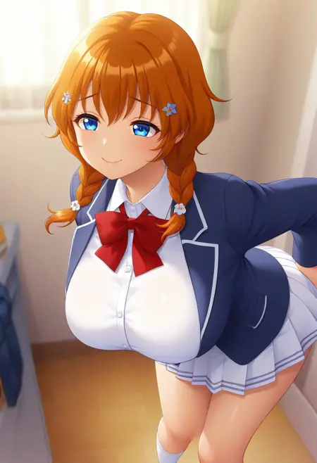 Recommend Prompt:Ichika Aihara, blue eyes, orange hair, medium hair, twin braids, hair ornaments, hairclips,