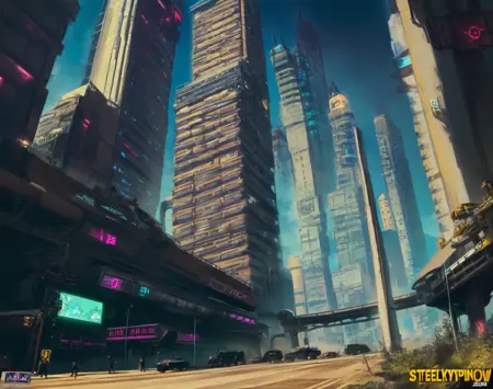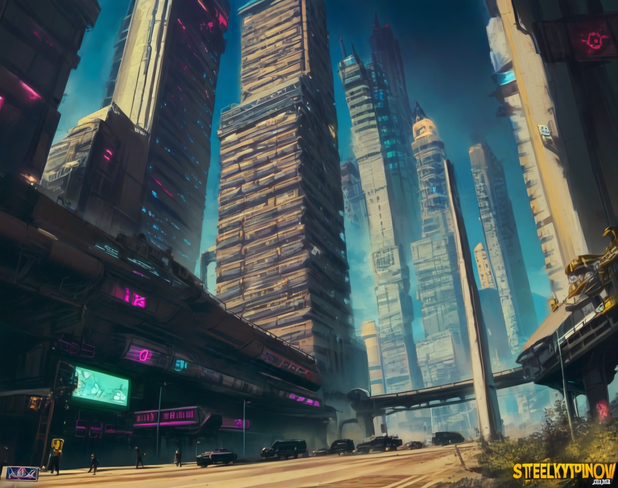 Steelpunk is a style of punk that is sort of a cross between the Atompunk era and the Cyberpunk era. It is marked by emerging tall skyscrapers that look like realistic 80s skyscrapers with aspects that subtly look Cyberpunk in nature. Many of the regular buildings where most people live tend to look decayed and run down due to a large disparity between the wealth classes.