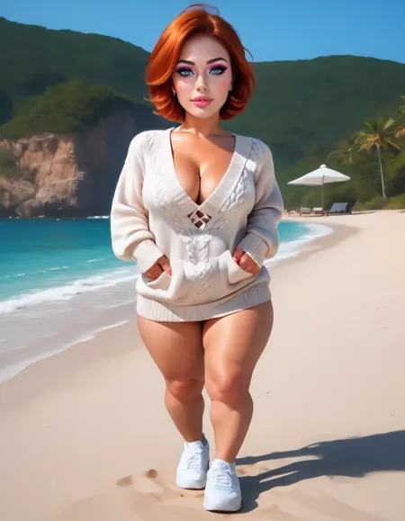 As addition i suggest to use something like "tiny" "thick thighs" or "size difference, tall male" if you consider to put "1boy" into the scene. But it's hard to get man and woman together on an image, because 99% of the images used for Training were from single woman.