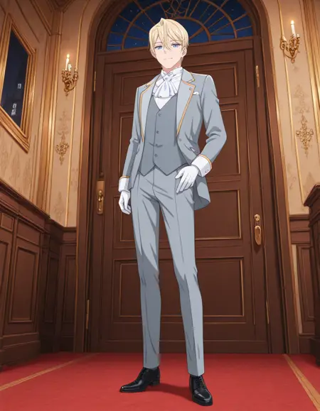 正装2,白色衬衫,领结,灰色夹克,灰色背心,长袖,白色手套,灰色长裤,黑色牛津鞋