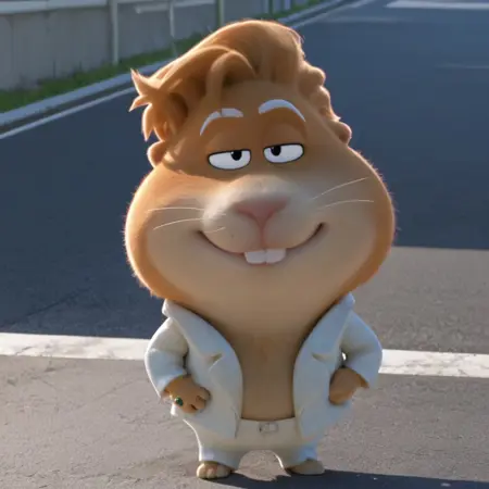 marmalade, guinea pig, male, furry, anthro, pink nose, whiskers, white eyebrows, buckteeth, gold fur, fluffy hair, short, no humans, black pupils,