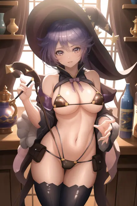 The triggerword is bikinimage. Due to the hat being very big and usually cut off at the top of the training images you might need some gens till you get a good one. Or do some additional prompting.