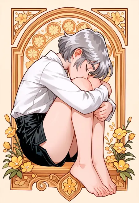 부드러운 음영, 따뜻한 (팔레트, 언더톤), 회화적 스타일, 부드러운 빛, 파스텔 톤, 유기적 형상, 반실사적, 애니메이션 영향, 자연광, 깨끗한 라인, 부드러운 질감, 묘사된 색조, 흙색 톤, 부드러운 포커스, 섬세한 해부학, 둥근 형상, 차분한 표정, 최소한의 배경, 꽃 모티프, 잎사귀 프레임, 평온한 분위기, 아르 누보 느낌, 상세한 머리카락, 미세한 대비, 따뜻한 주변광, 판타지 초상화, 우아한 디자인, 균형 잡힌 구성, 동화책 스타일, 평온한 분위기, 부드러운 윤곽선, 퍼짐된 그림자, 회화적 렌더링