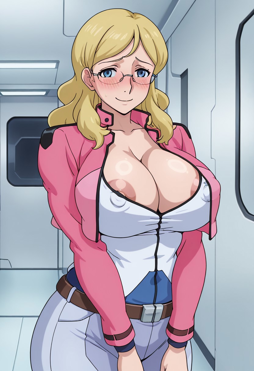 1girl, lindavashti00, milf, mature woman, blonde hair, blue eyes, glasses. rimless glasses, peach jacket, white shirt, uniform,