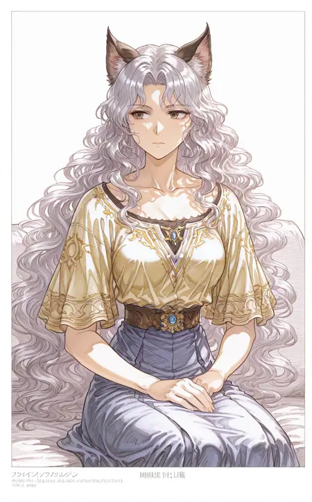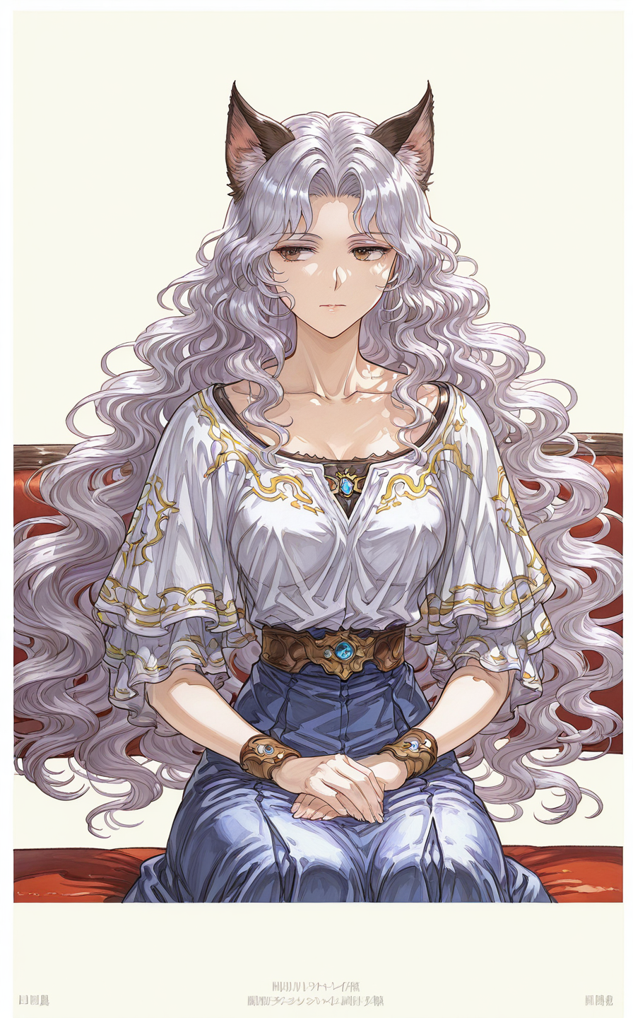 マーガイン、銀髪、波状の髪、猫の耳、茶色い目、