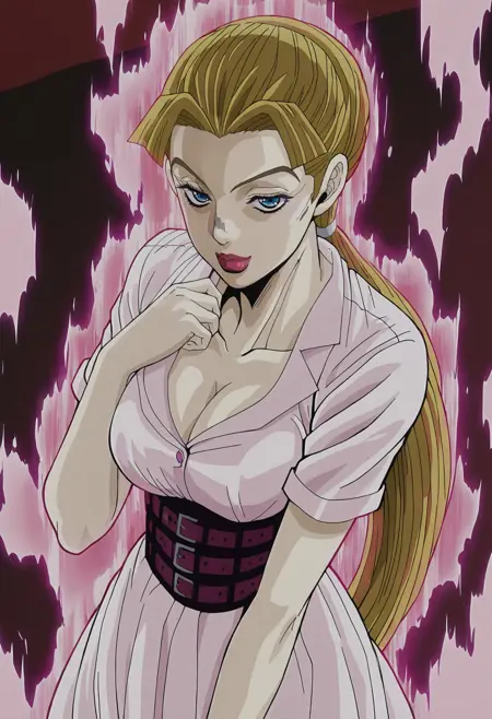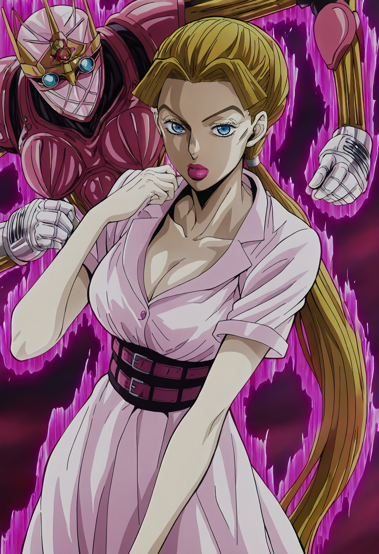 캐릭터는 《JOJO의 기묘한 모험: 다이아몬드는 부서지지 않는다》의 여성 캐릭터 후지 아야
