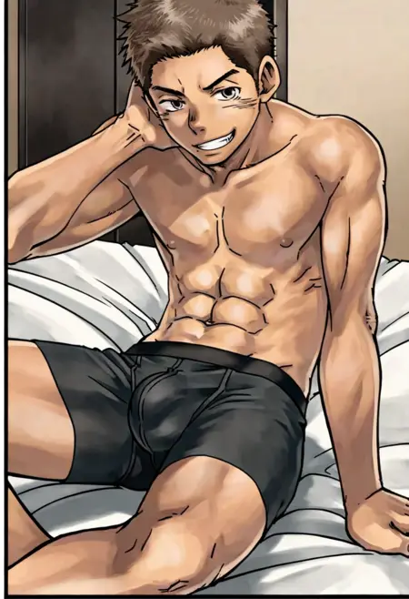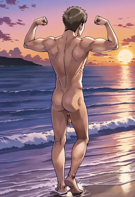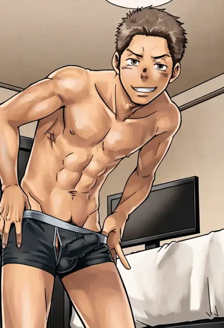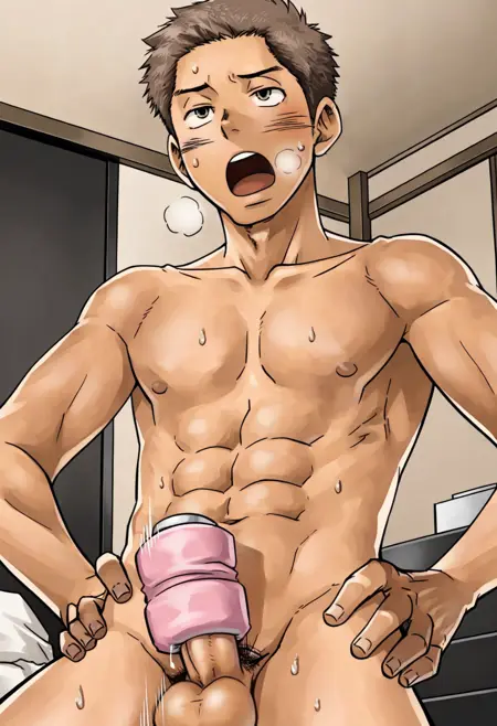 hei-kun,ashen brown hair,grey eyes,muscular male,uncensored