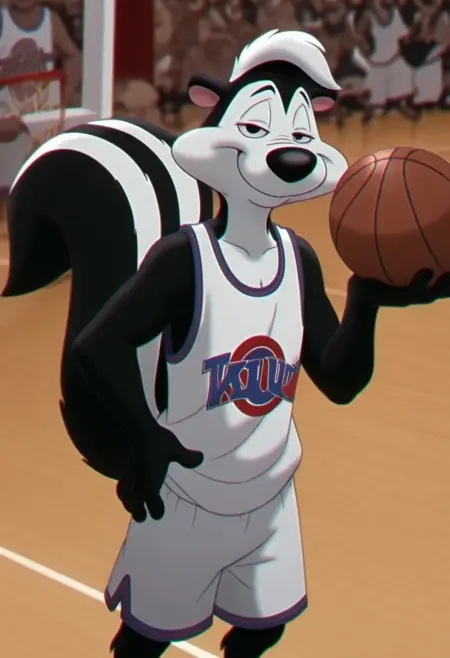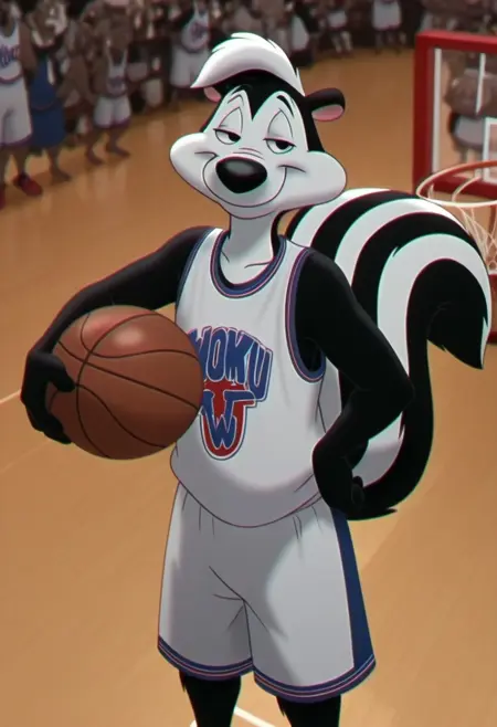 그는 최고의 스컹크다. Space Jam과 Looney Tunes: Back In Action에서의 단편적인 출현 이미지로 훈련되었다.