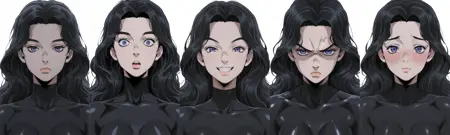 有时在较远的世代(如全身图)中,眼睛可能略微呈现灰蓝色。你可以添加紫色眼睛标签来缓解这一情况,但通常并不必要。若使用 Adetailer,则不会出现此问题。