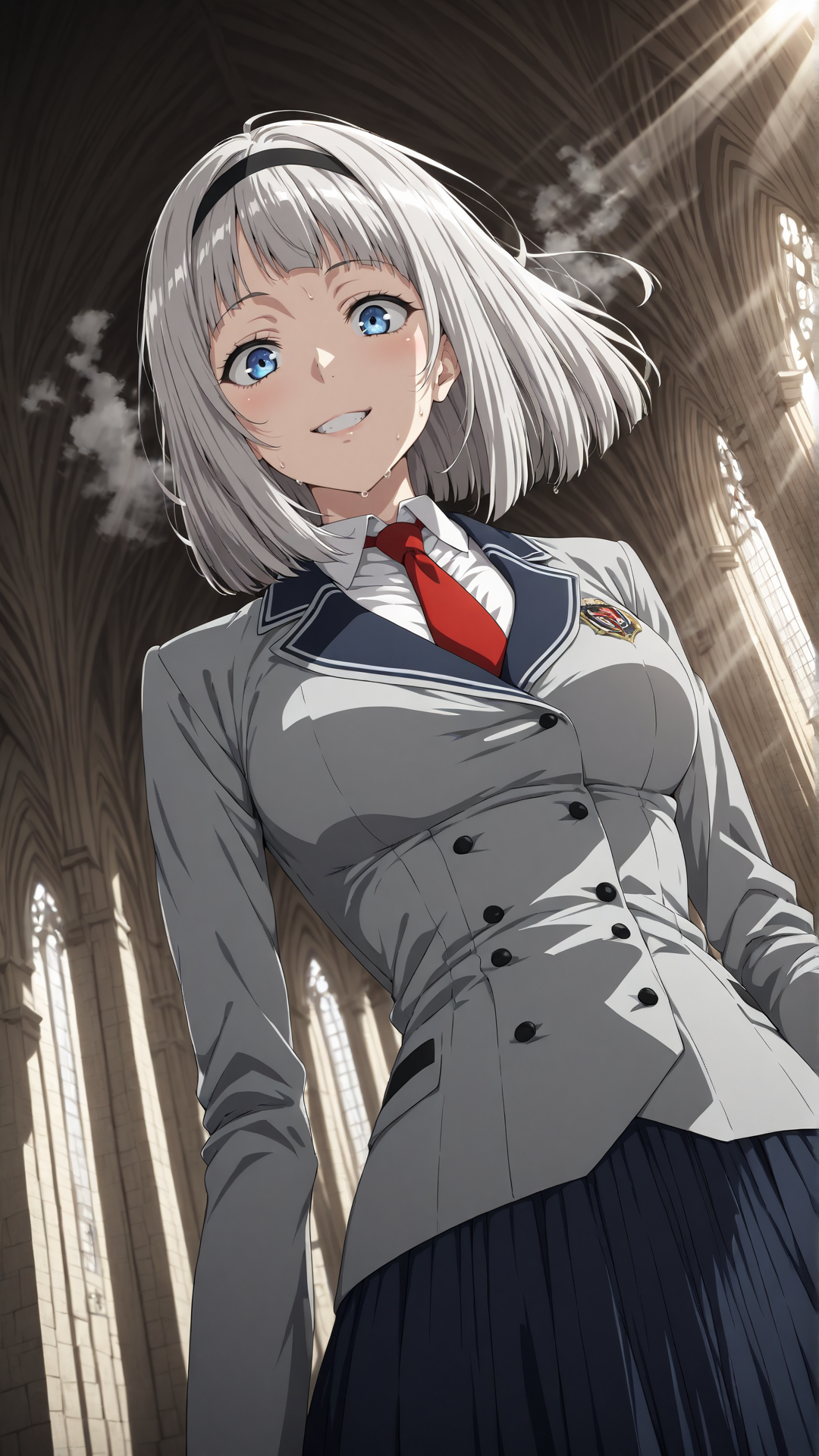 annauni,jacket,collared shirt, necktie, grey jacket,navy skirt