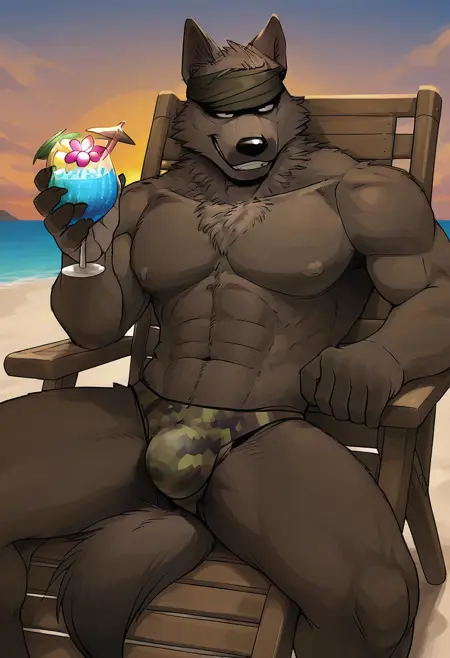 強化プロンプト: "furry, male, black eyes, wolf tail"