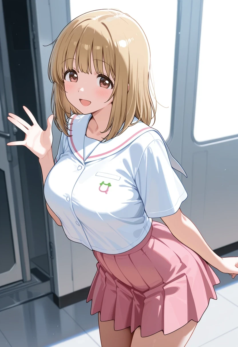 白色水手领,粉色超短裙,百褶裙,白色衬衫,