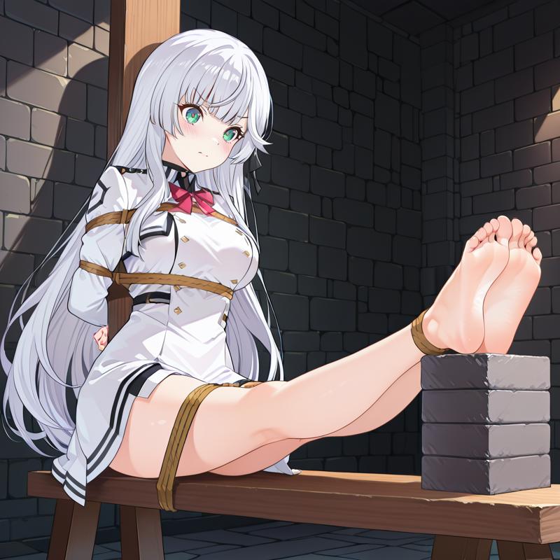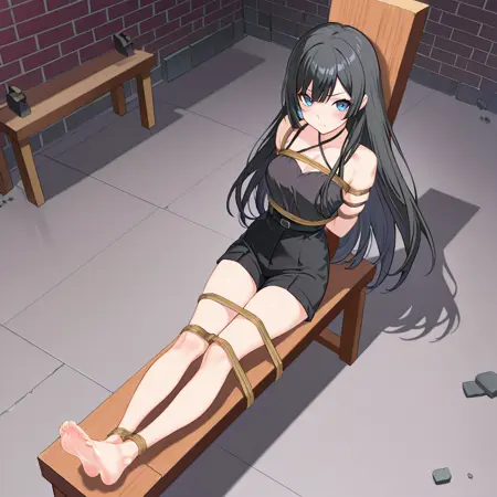 Tigerbench, bound, rope, from above, feet, bricks, sitting ***** NOT stable