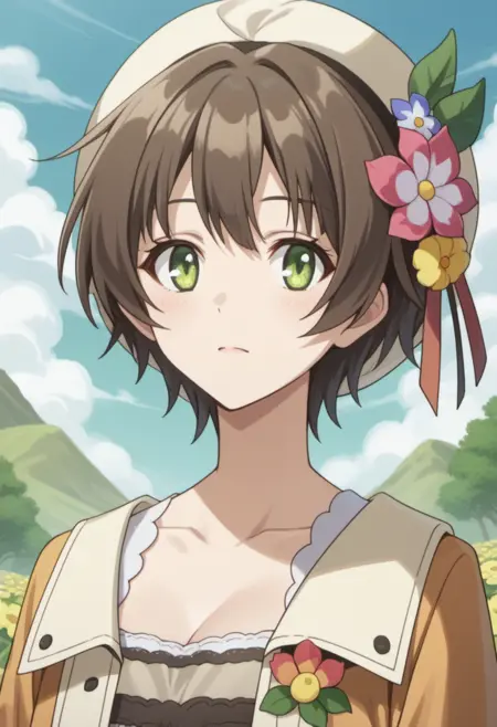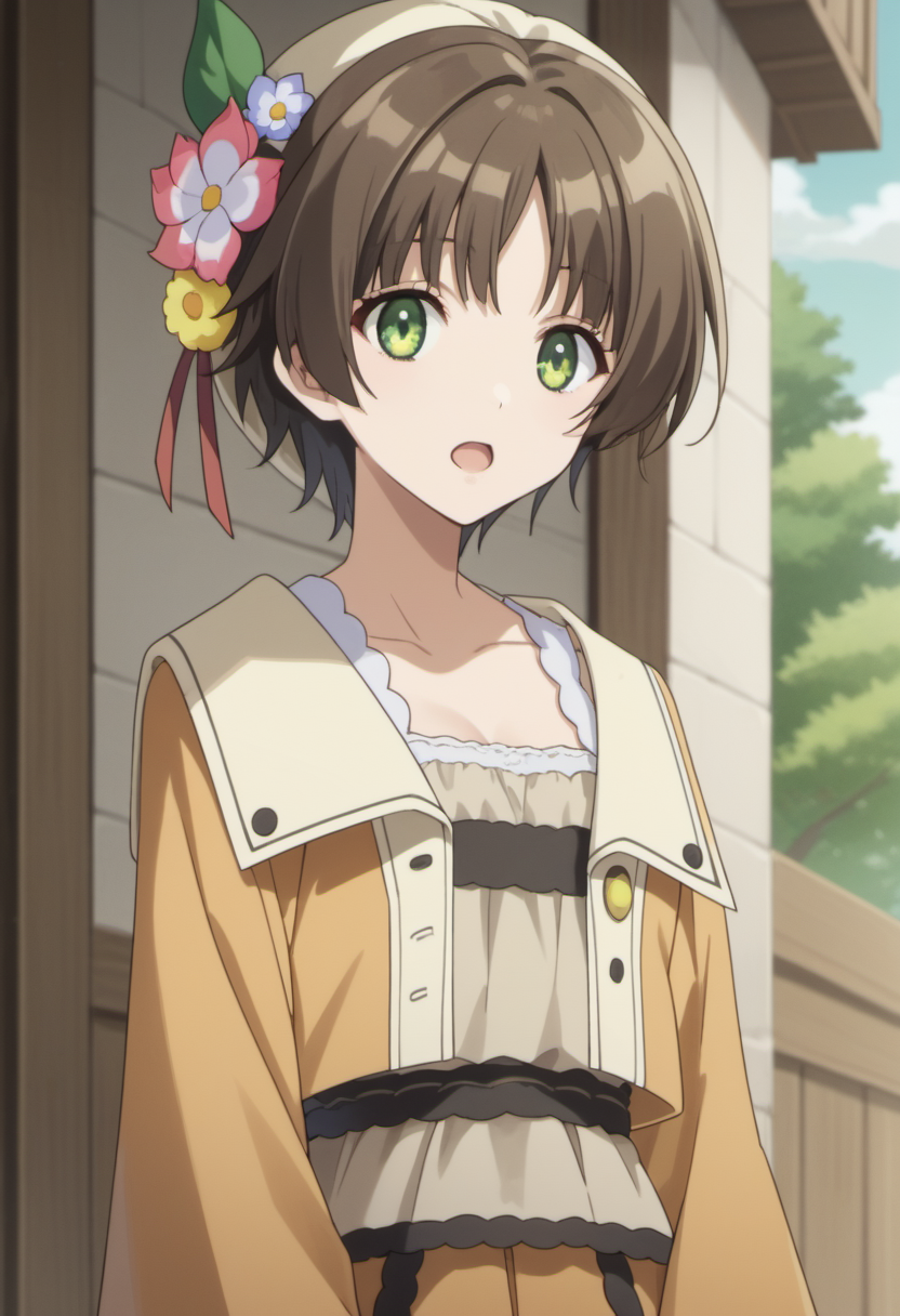 Trigger Words: nio altugle, short hair, brown hair, green eyes