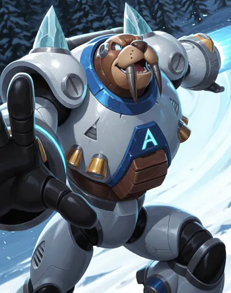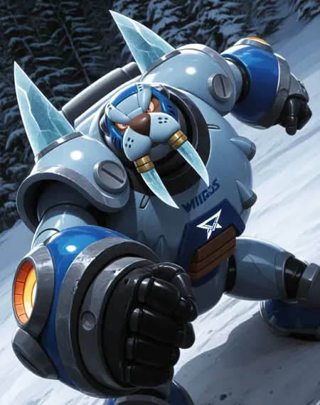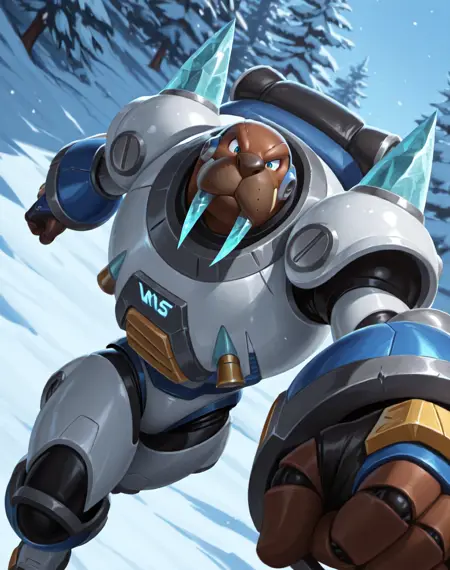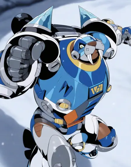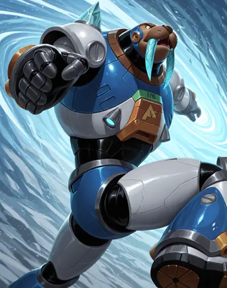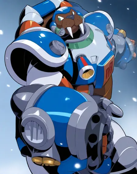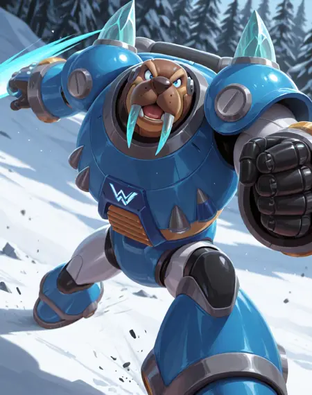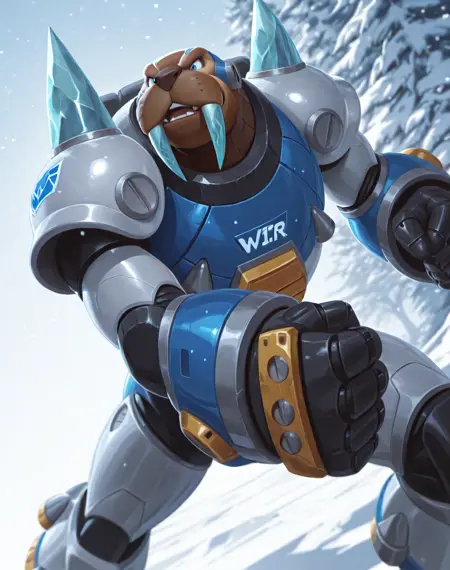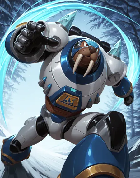 这是一个用于《洛克人X》游戏中角色“霜海象”的插画风格LoRA。