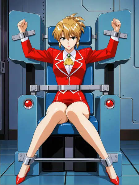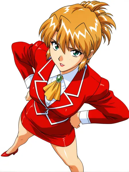 触发词:s_aika,folded ponytail,hair between eyes,blonde hair,short hair,green eyes,earrings,lipstick