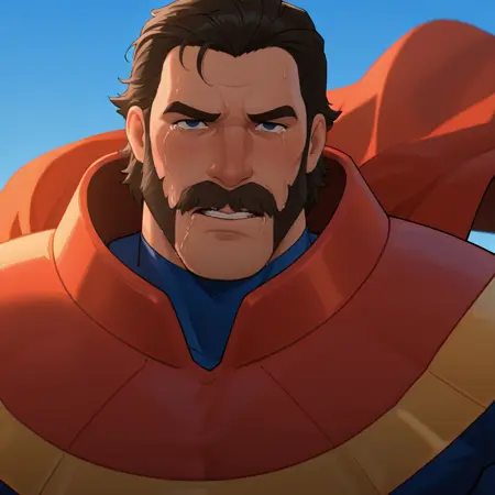 phnmmn, 1boy, mustache, solo, bodysuit, superhero