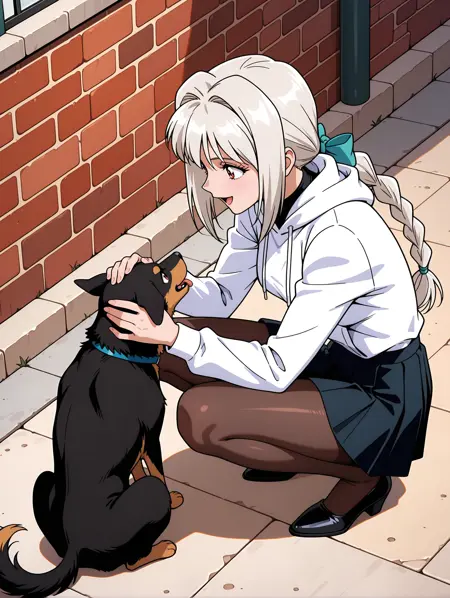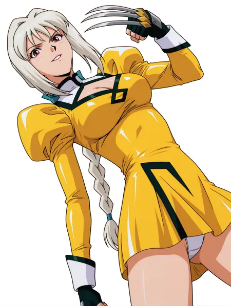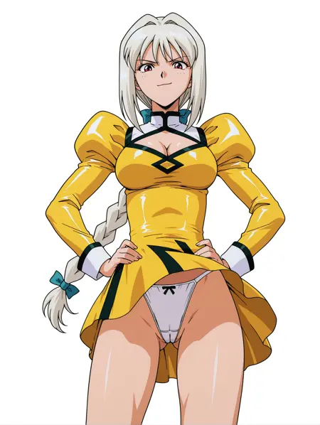 トリガーワード・tonia,hair intakes,grey hair,red eyes,hair ribbon,long hair,single braid,
