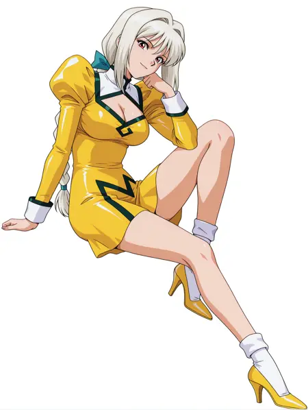衣装ワード ・t_clothes,yellow dress,cleavage cutout,juliet sleeves,long sleeves,white bobby socks,yellow high heels,