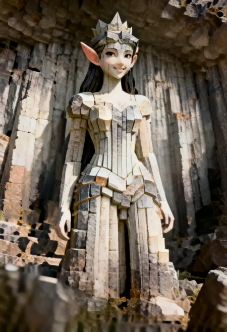 複雑な岩の模様、バランスの取れた対称性、そして光と石の柔らかな相互作用を再現し、柱状節理がもつ魅惑的な美しさを表現します。