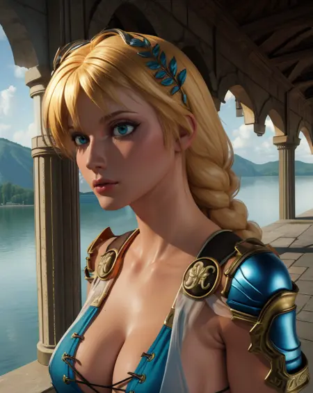 sophitia, blonde hair, aqua eyes,