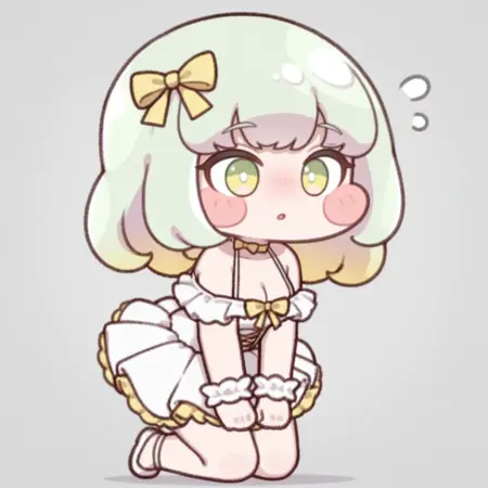 base:melona-tc,gradient hair,green eyes,yellow eyes,green hair,blonde hair,medium hair,multicolored hair,blush stickers,(chibi:0.7),
