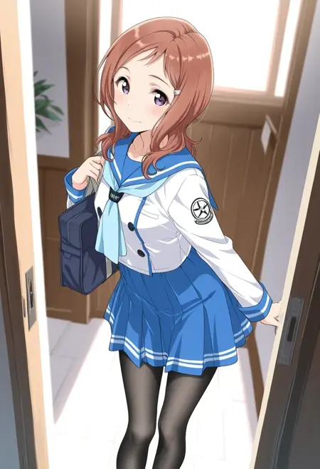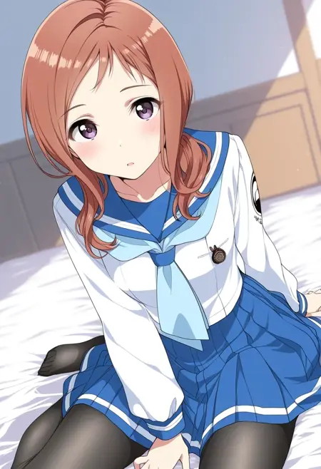 blue sailor collar,red neckerchief,blue miniskirt,white trim,ribbon-trimmed thighhighs,