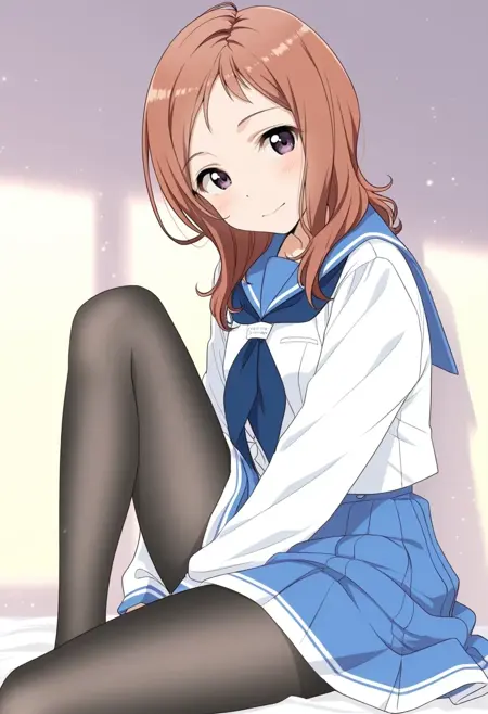 blue sailor collar,black pantyhose,blue skirt,white trim,blue neckerchief,