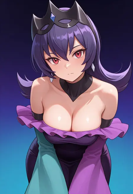 | 학습된 단어 | bellelba, sabrina \(pokemon\), long hair, purple hair, red eyes, hair ornament, black tiara, earrings, black choker, two-tone dress, purple dress, aqua dress, long dress, detached sleeves, long sleeves, wide sleeves, mismatched sleeves, single bare shoulder, purple gloves복사됨! |