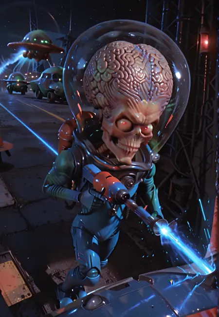 나는 이 영화의 "화성인"들을 만들어 보기로 결정했다. 하지만 뭔가 약간 "흐릿하게" 나왔다.