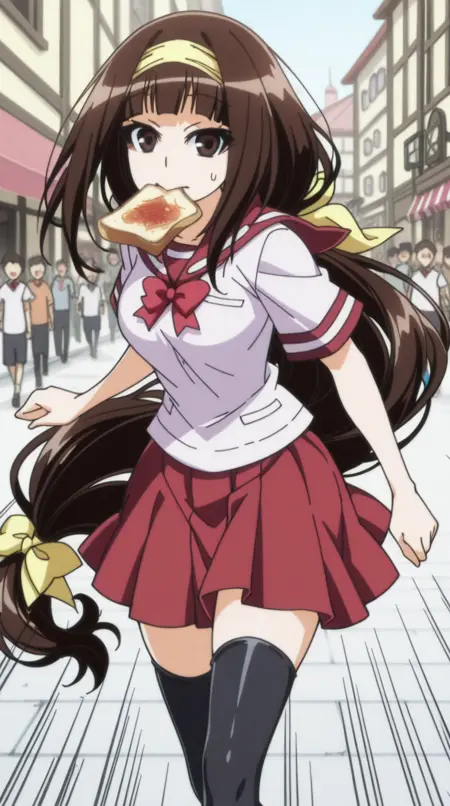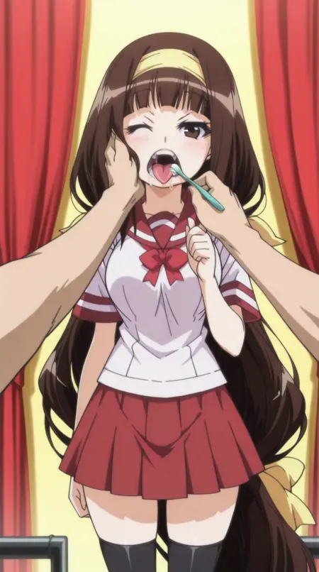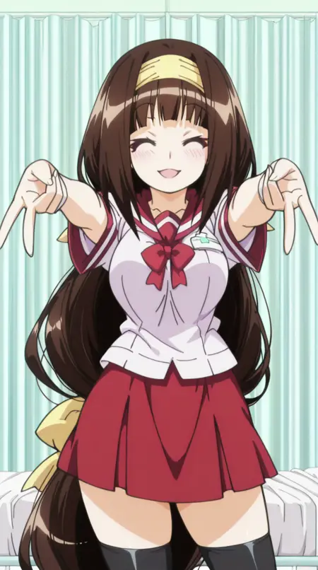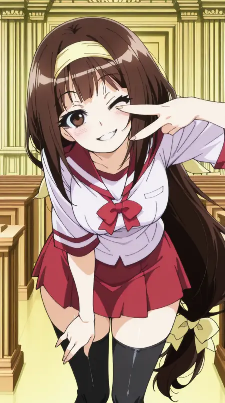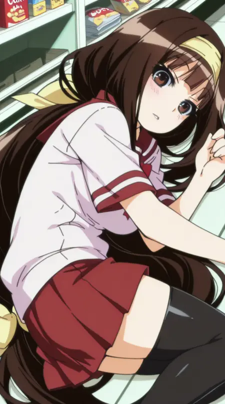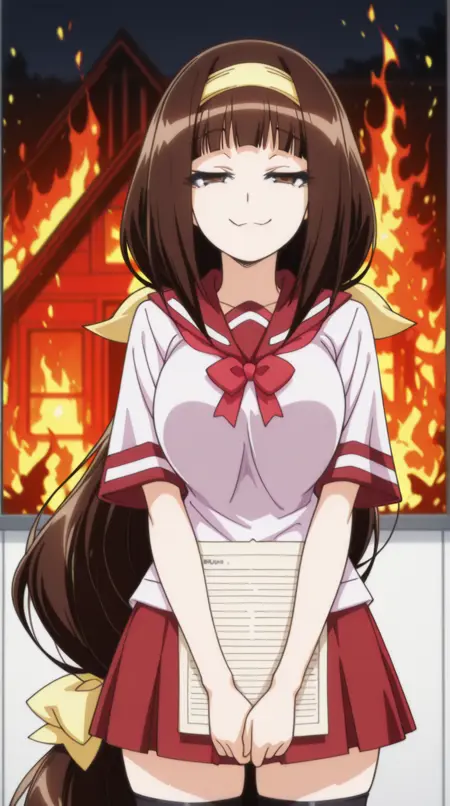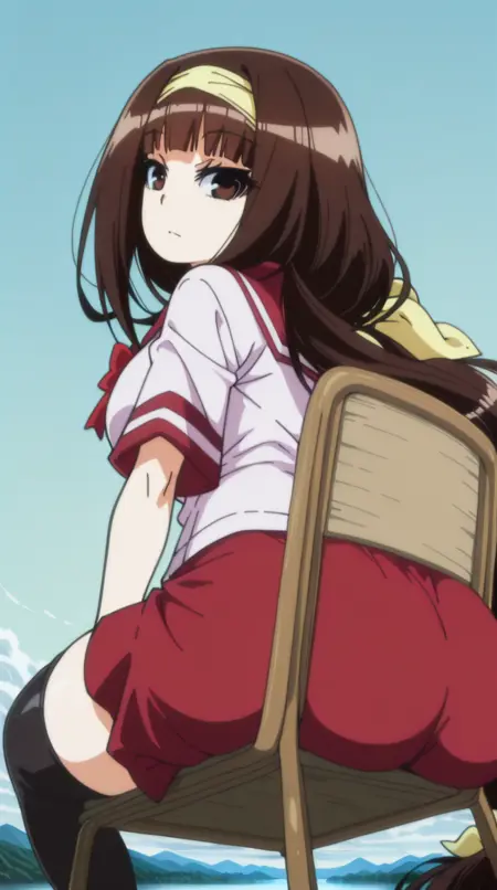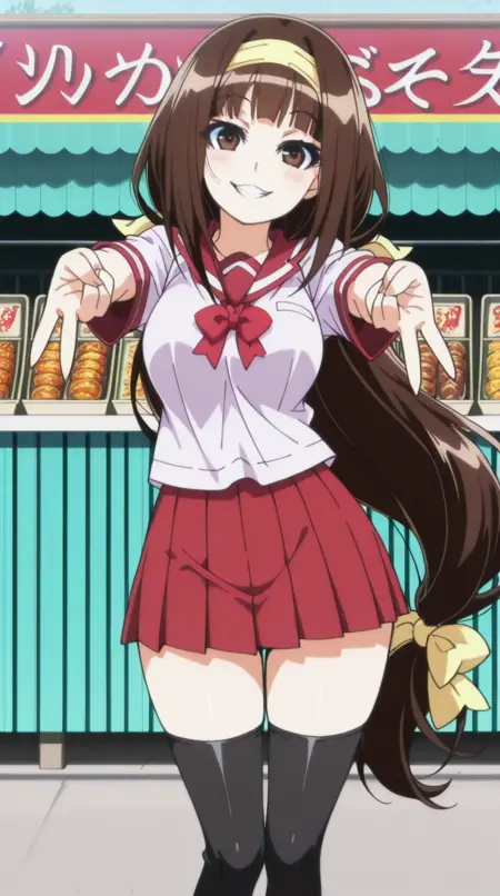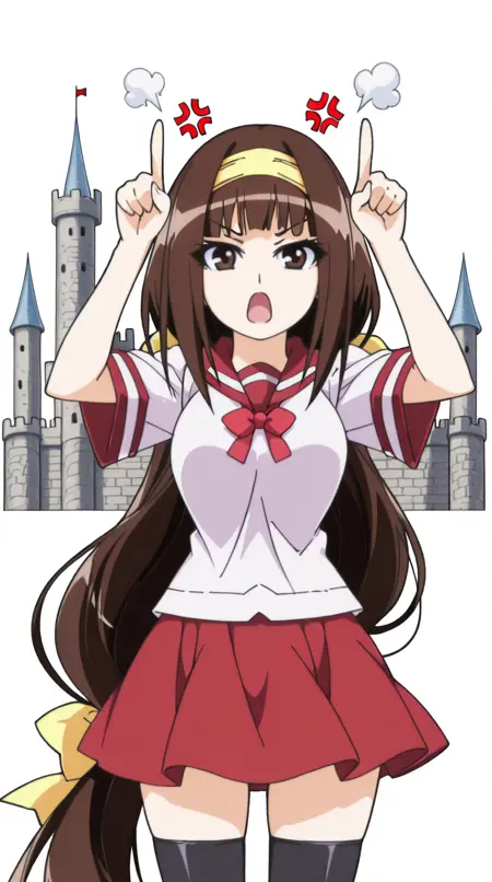 najimi ajimu,长发,棕色头发,蝴蝶结,丝带,棕色眼睛,极长发,低扎长发,发带,发饰蝴蝶结,黄色发带,成熟女性,中等胸部,动漫截图