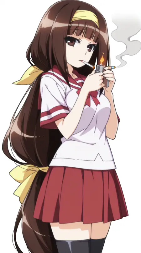 裙子,过膝袜,蝴蝶结,丝带,水手服,黑色过膝袜,绝对领域,红色水手领,红色裙子,红色领结,