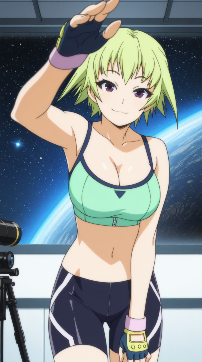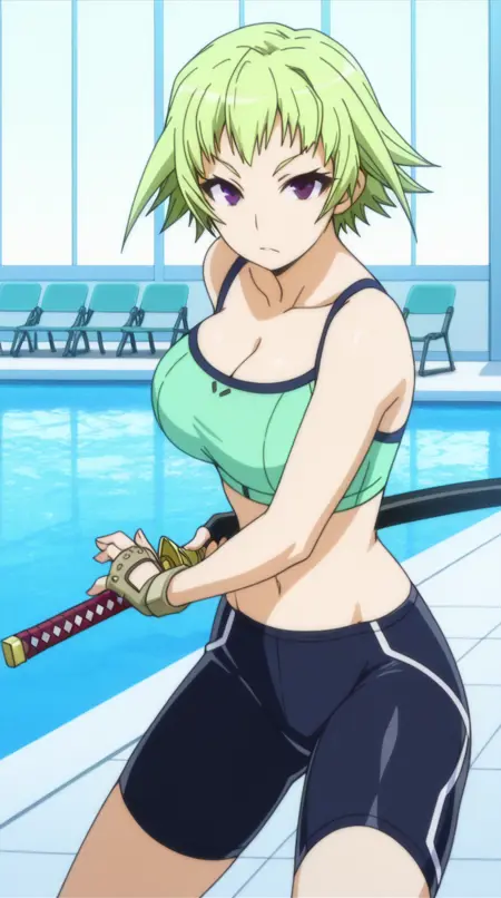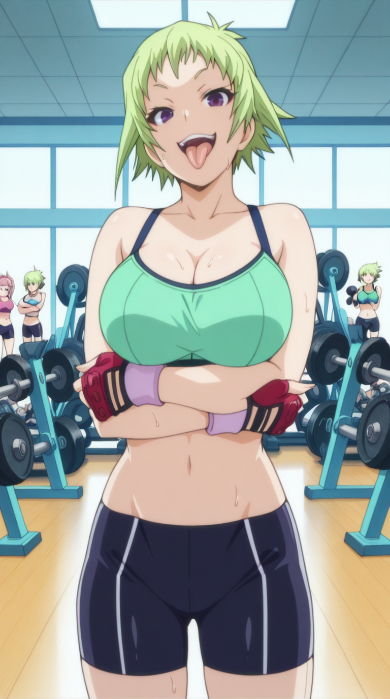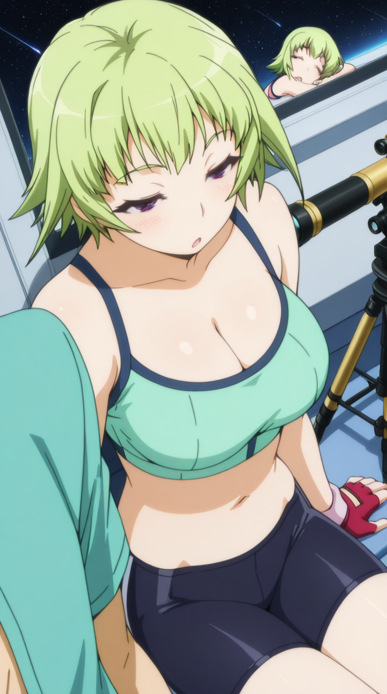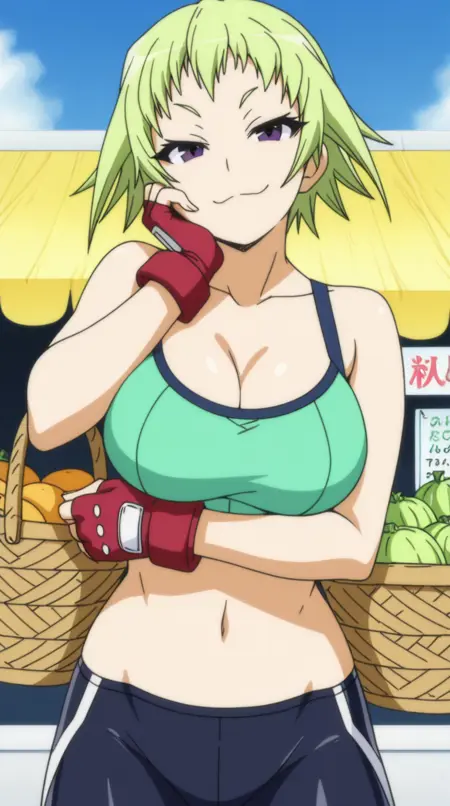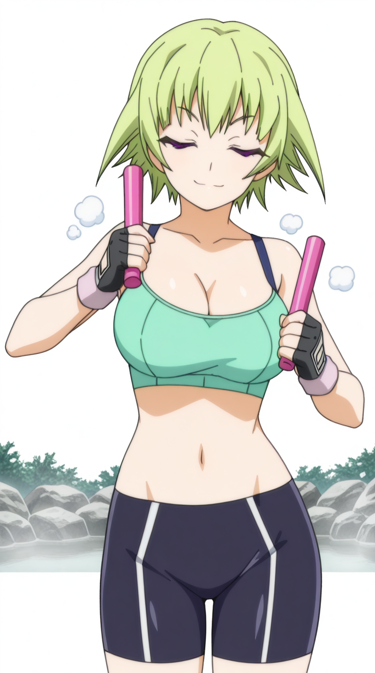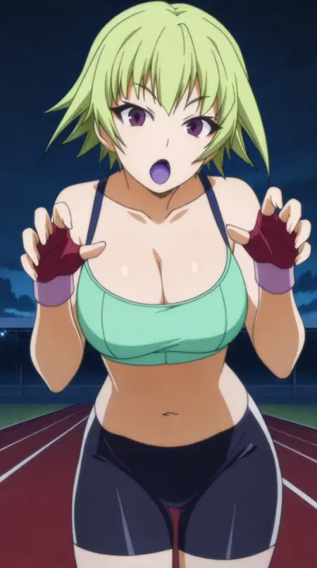 nekomi nabeshima、短い髪、紫色の目、緑色の髪、成熟した女性、大きな胸、アニメのスクリーンキャプチャー
