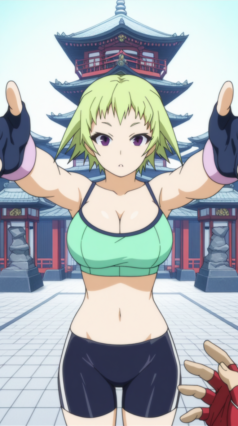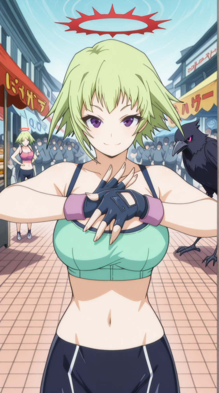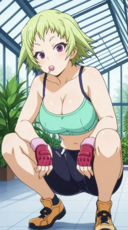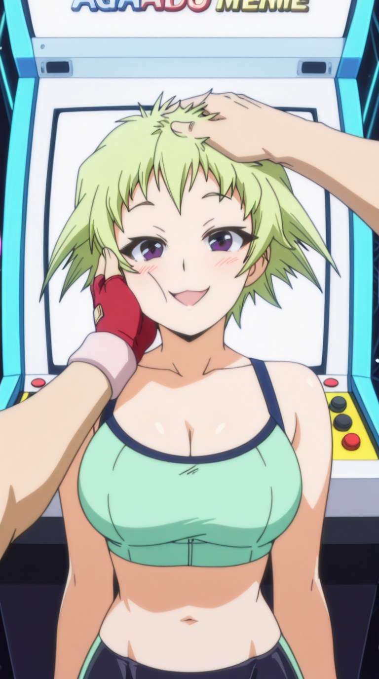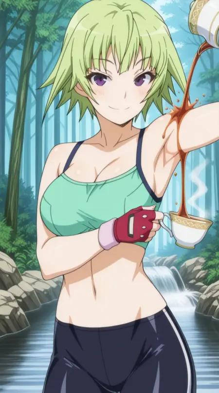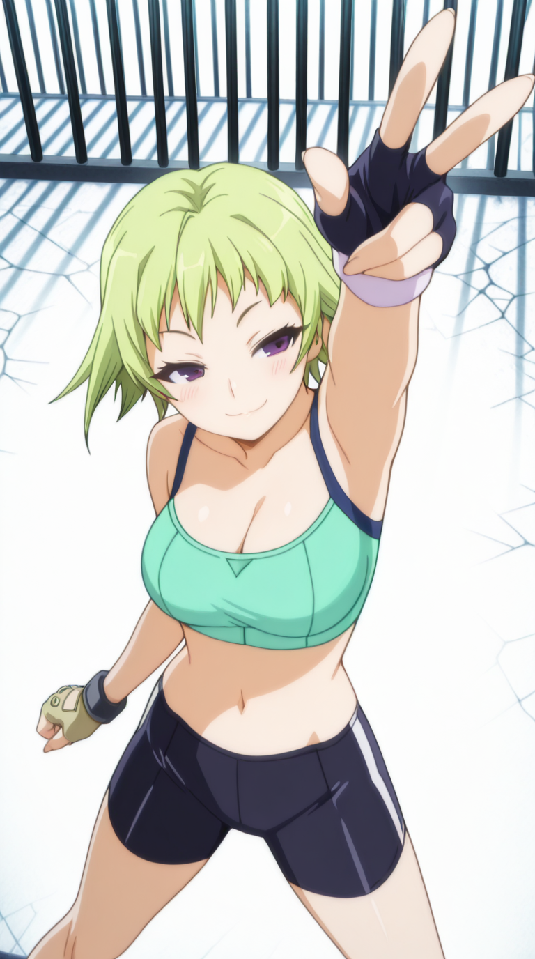 nekomi nabeshima、短い髪、紫色の目、緑色の髪、成熟した女性、大きな胸、アニメのスクリーンキャプチャー