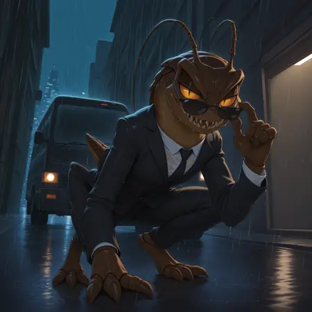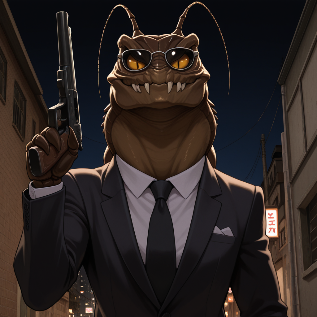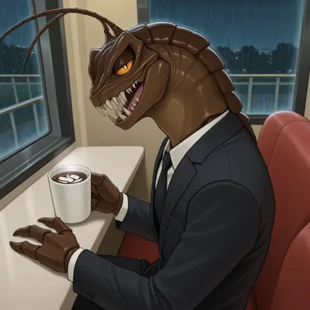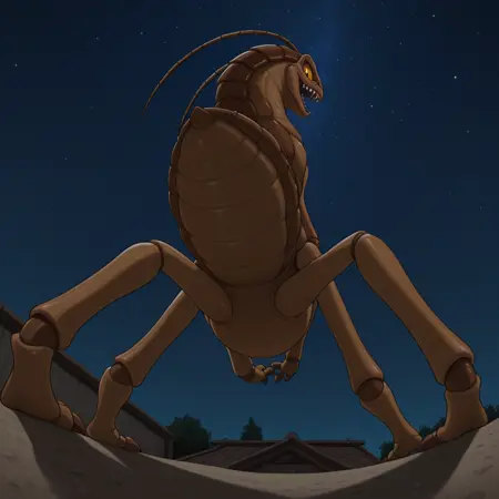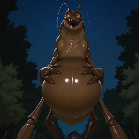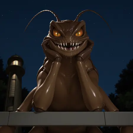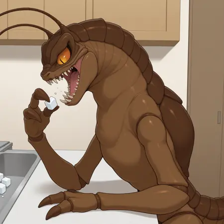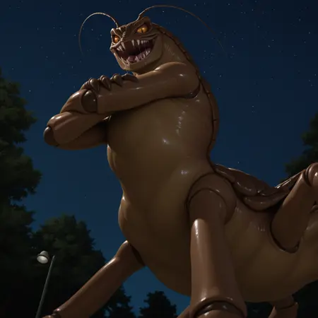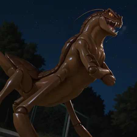 edgarmib, 外星人, 节肢动物, 蟑螂, 昆虫, 埃德加·虫, 怪物, 虫子, 棕色身体, 橙色巩膜, 纵向瞳孔, 尖牙, 触角, 4条腿, 3个脚趾, 3根手指