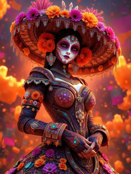 The most complete lora about day of the dead (Dia de Muertos), increase the lora weight values for more vibrancy, richer decorations and higher extravagance