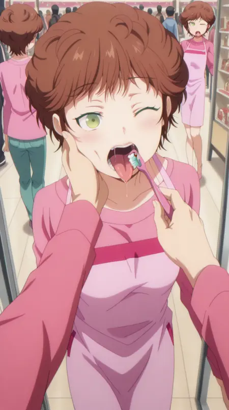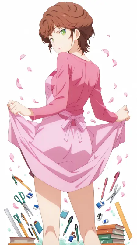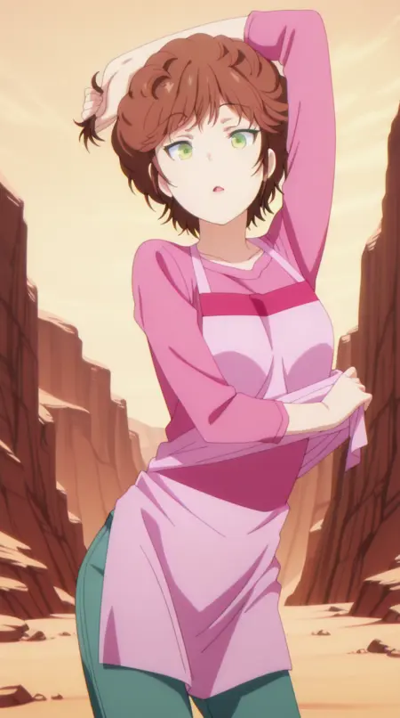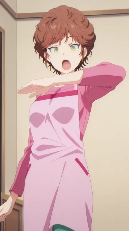 keiki kisaragi, short hair, brown hair, green eyes, mature female, small breasts, anime screencap