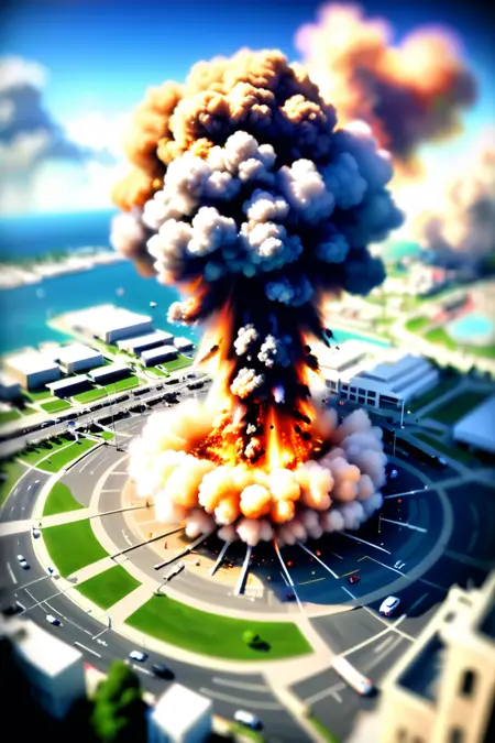 This model is trained on the concept of tilt shift, which is an old camera trick that makes the subject of photos look very tiny by manipulating blur on the upper and lower half of the image to make it look like depth of field blur. Anyway, it makes everything look really tiny. The trigger word is "tilt-shift".